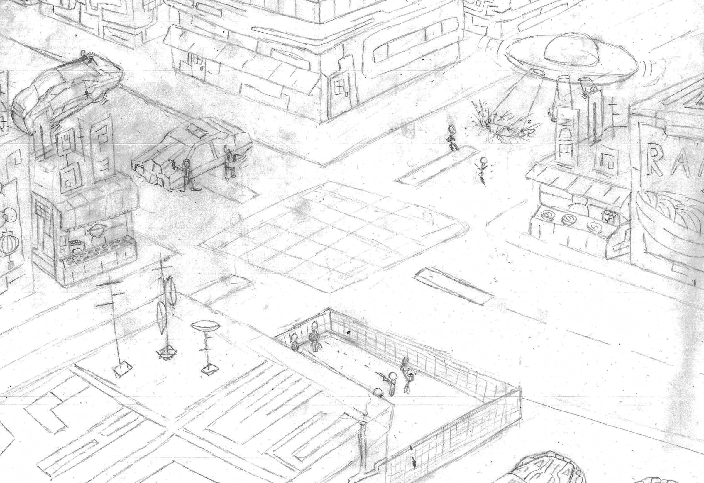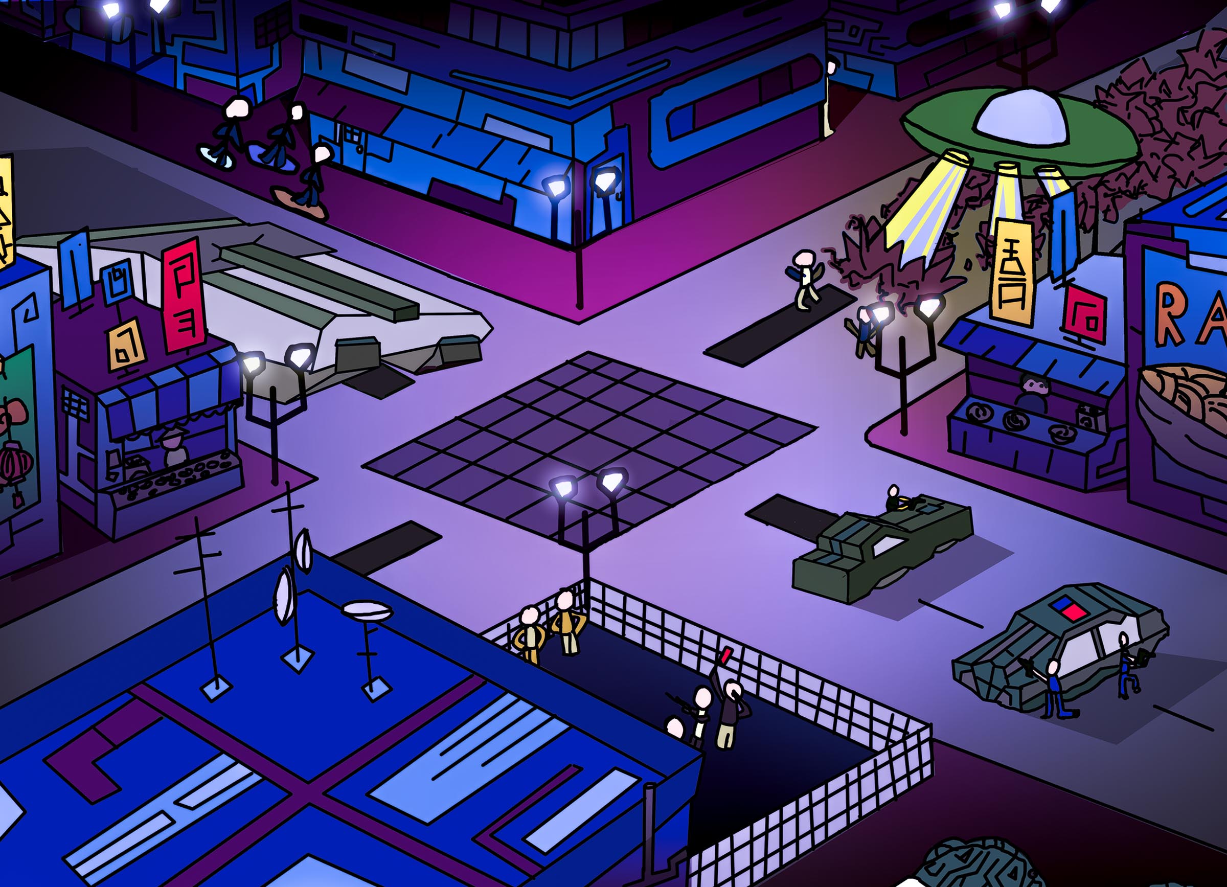 Cyberpunk City ist eine futuristische Stadt der Nacht. Neonschilder, illegale Aktivitäten und alles kann dort gefunden werden. Diese Arbeit ist ein Wimmelbildspiel, das von der Netflix-Animation Cyberpunk Edgerunners inspiriert wurde. Ich hatte 3 verschiedene Ideen und daraus entstand für mich ein Cyberpunk. Ich begann mit einer A5-Skizze, dann habe ich sie auf A3 detailliert und schliesslich in Photoshop als A3 besser bearbeitet und dann koloriert.
